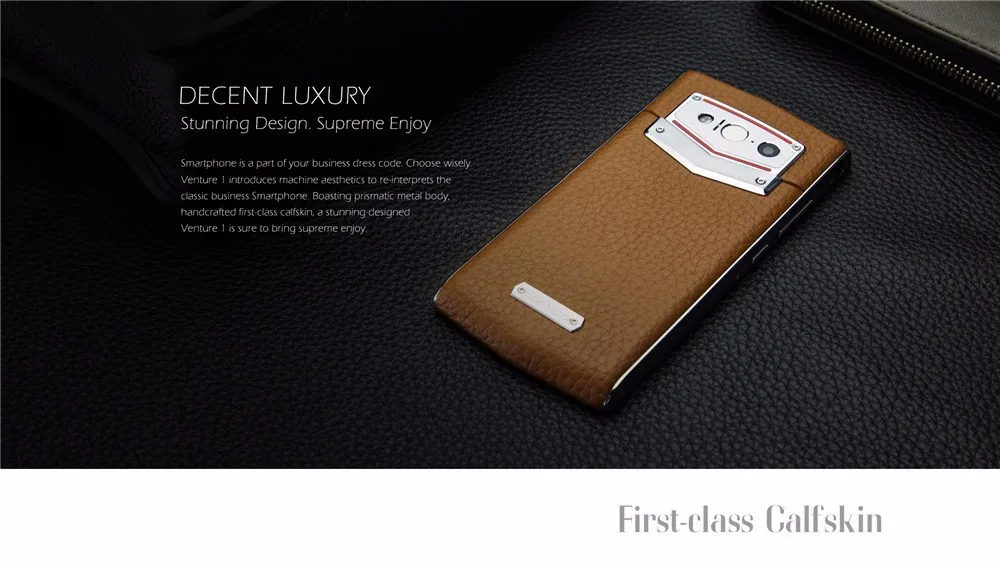 Tylna klapka obłożona jest skórą cielęcą, co na pewno wpływa na przyjemność pracy z telefonem. Venture 1 otrzymał 5-calowy ekran o rozdzielczości 720p, sercem telefonu będzie 8-rdzeniowy procesor MT6753 o taktowaniu 1.3GHz. Procesor wspierać będzie 3GB pamięci RAM oraz opcjonalnie 16GB lub 32GB pamięci ROM, w zależności od zakupionego modelu, pamięć można rozszerzyć o dodatkowe 128GB pamięci na karcie microSD.